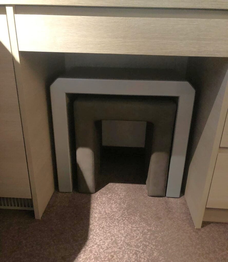 Another thing that some people don’t notice is the hidden extra seating tucked under the desk or vanity.